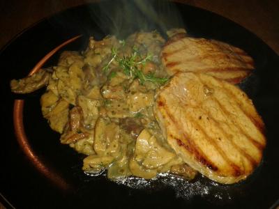 Kalbsmedaillons an Waldpilzen mit Kresse