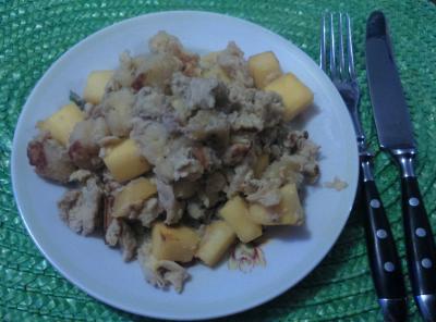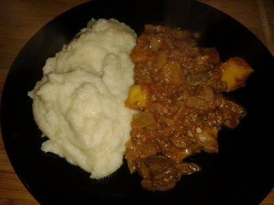 Indische Leber- Mango Pfanne an Blumenkohlpüree