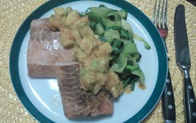 Wildlachsfilet mit Grapefruitsalsa an Zucchini-Bandnudeln