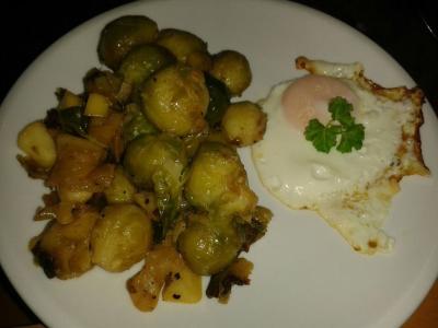 Die Röstaromen und der deftige Geschmack des Rosenkohls in Verbindung mit dem süß-säuerlichen Apfel und Muskat ergeben eine super leckere gesunde Mahlzeit. Wir haben uns dazu ein Ei gebraten :)