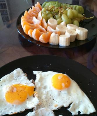 Obstteller, 3 Spiegeleier