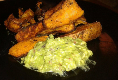 - Süßkartoffeln waschen, halbieren, in Wedges schneiden