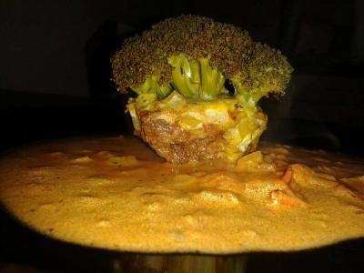 - Eimasse/ Hackmasse in Muffinformen aufteilen, jeweils ein bis zwei Röschen Broccoli hineinstecken