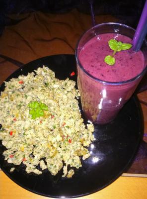 Kräuter-Rührei + Blaubeeren-Ananas-Smoothie